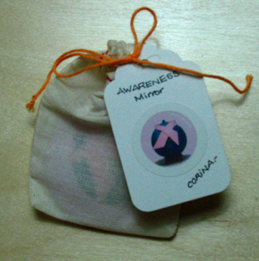 | The Pocket Mirror comes inside this protective bag, hand signed by the artist, Corina S. Alvarezdelugo |